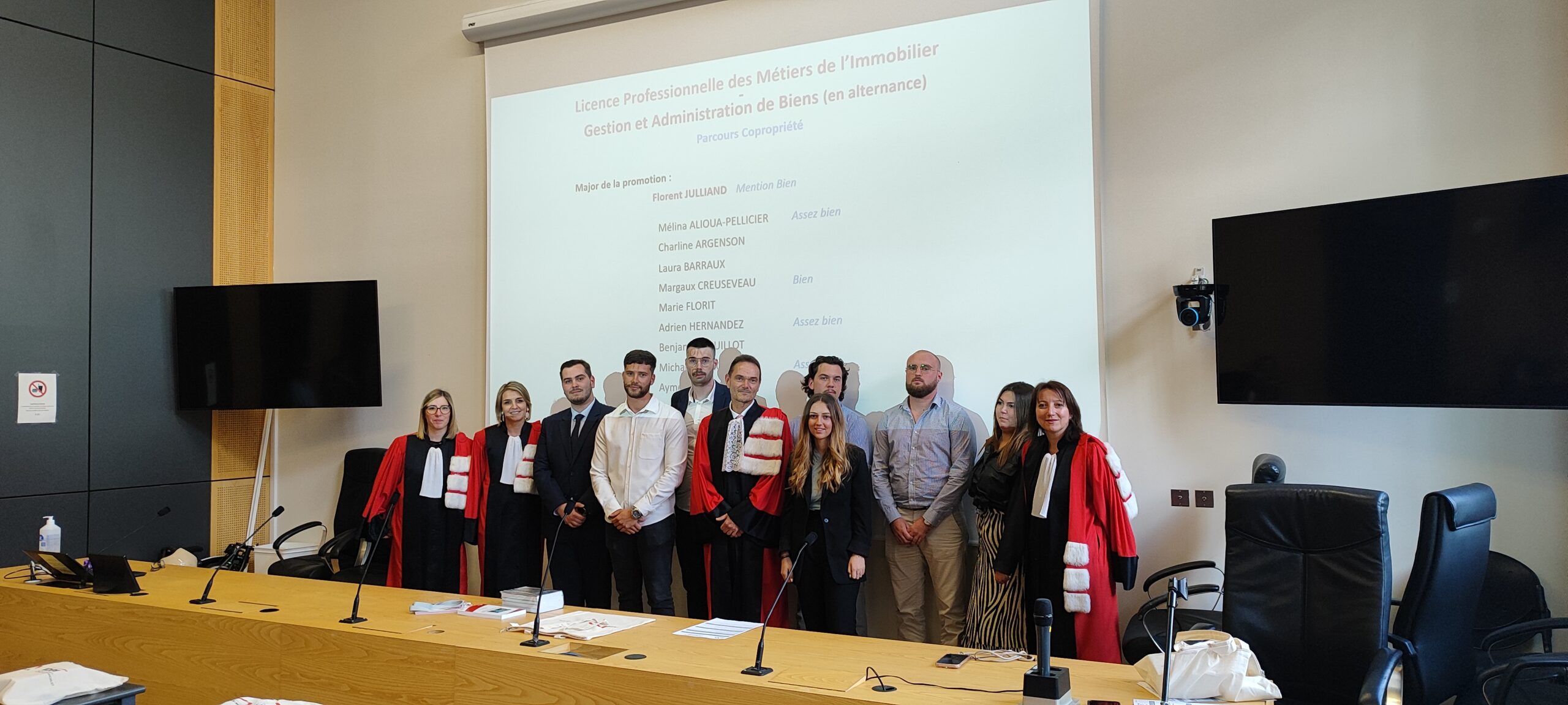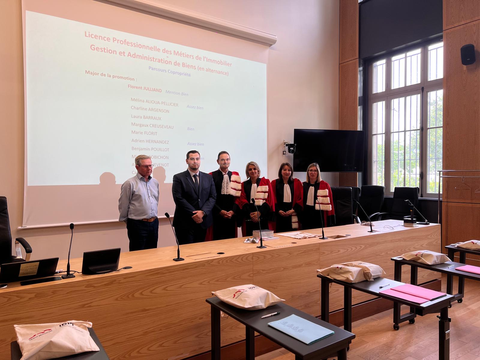 Florent JULLIAND, major de la promotion Licence Professionnelle des Métiers de l’Immobilier Gestion et Administration de Biens (en alternance), parcours Copropriété, dirigée par madame Virginie PEZZELLA