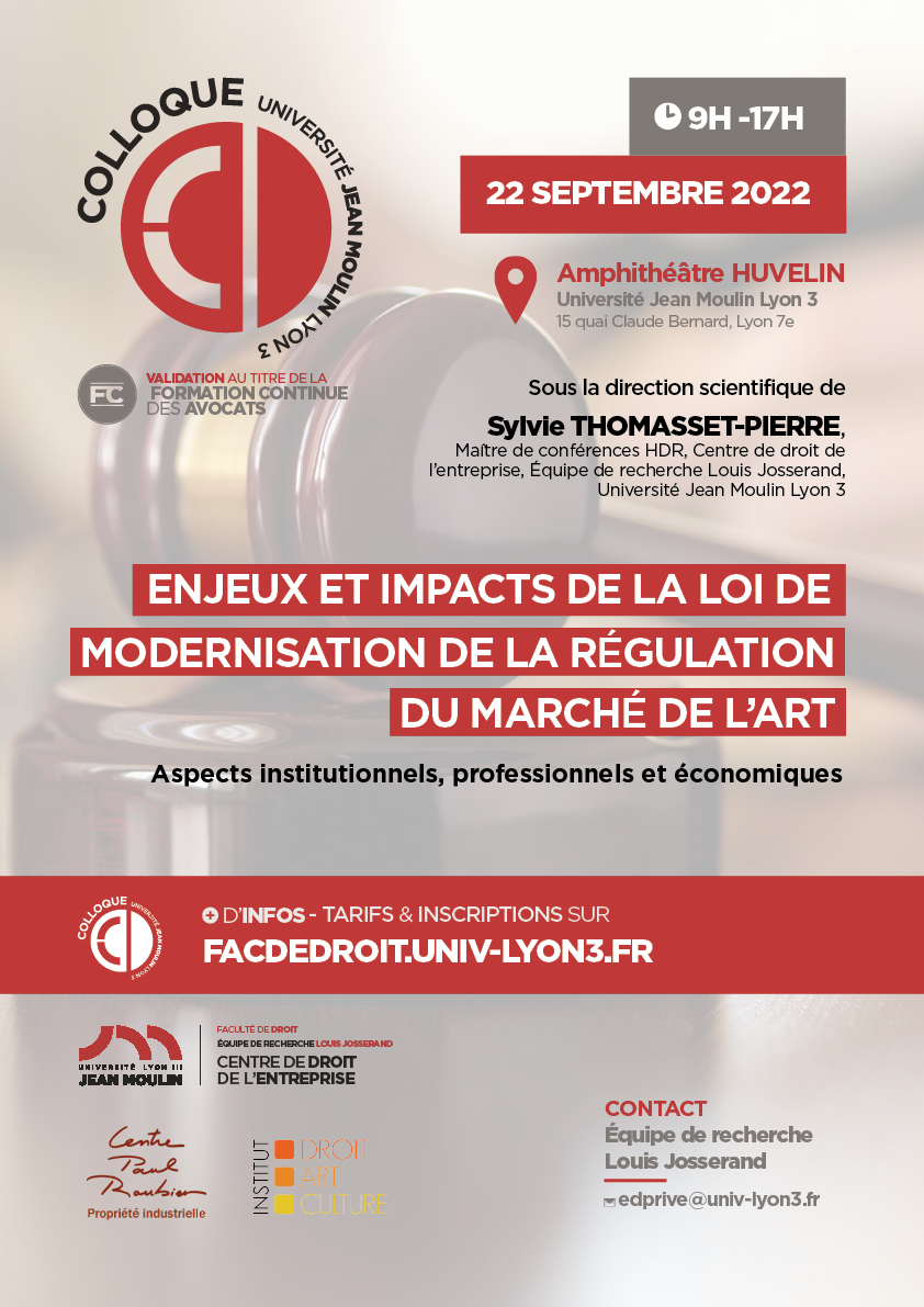 [COLLOQUE] "Enjeux et impacts de la loi de modernisation de la régulation du marché de l'art"
