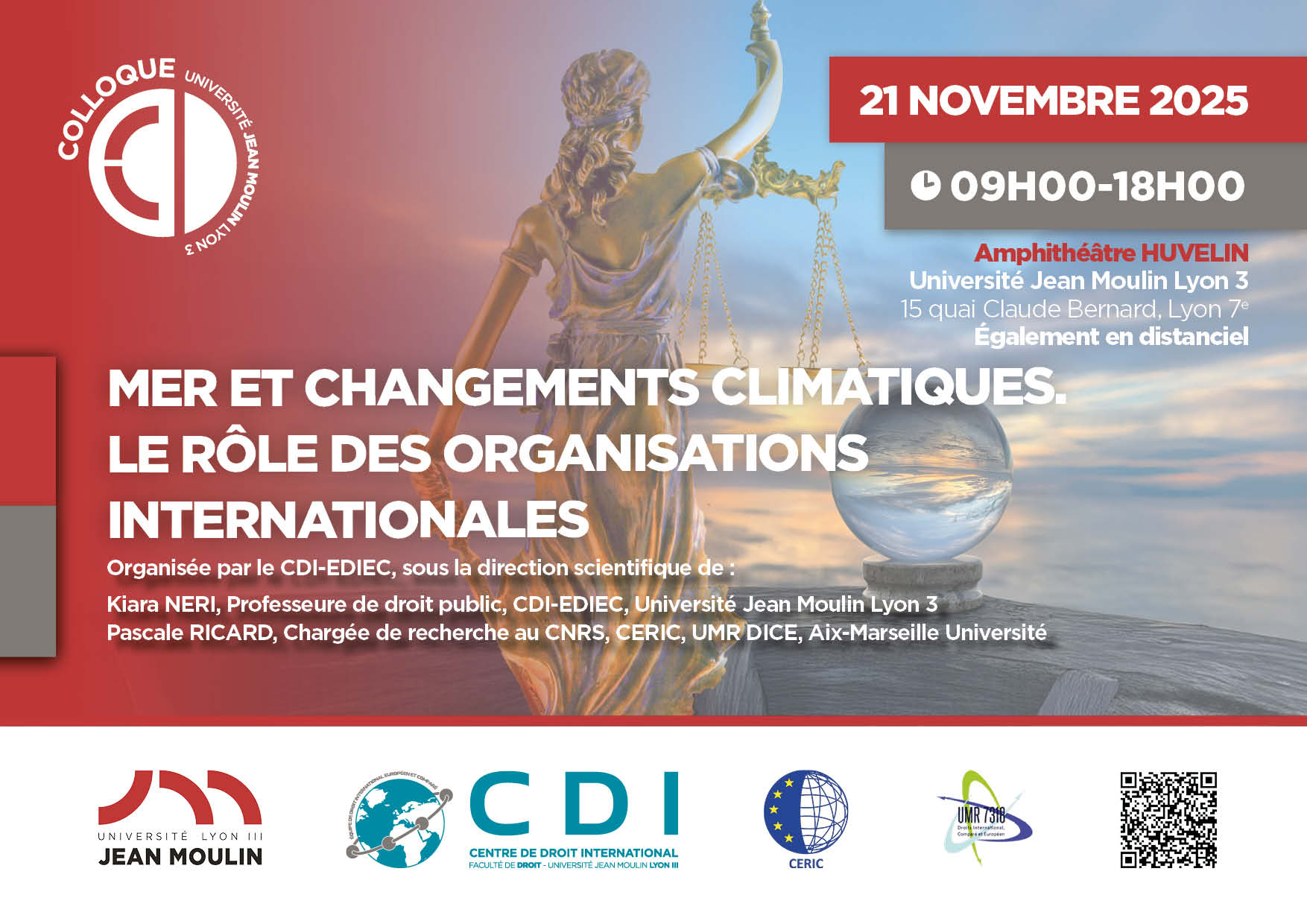 Colloque organisé dans le cadre du projet Mer et changements climatiques, sous la direction scientifique de Kiara NERI (Professeure de droit public, CDI-EDIEC, Université Jean Moulin Lyon 3) et Pascale RICARD, (Chargée de recherche au CNRS, CERIC, UMR DICE, Université Aix-Marseille)