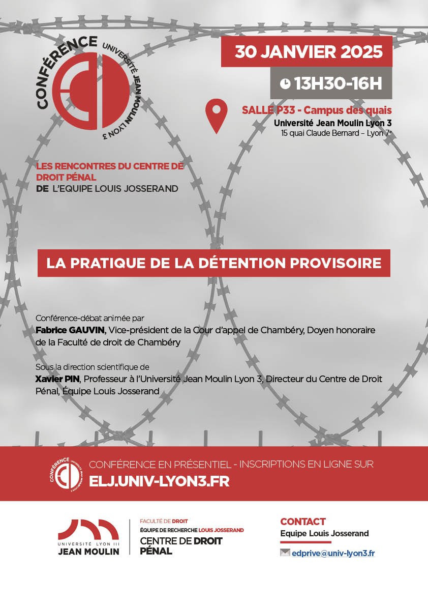 Sous la direction scientifique du Professeur Xavier PIN, Directeur du Centre de Droit Pénal, Equipe Louis Josserand, Université Jean Moulin Lyon 3