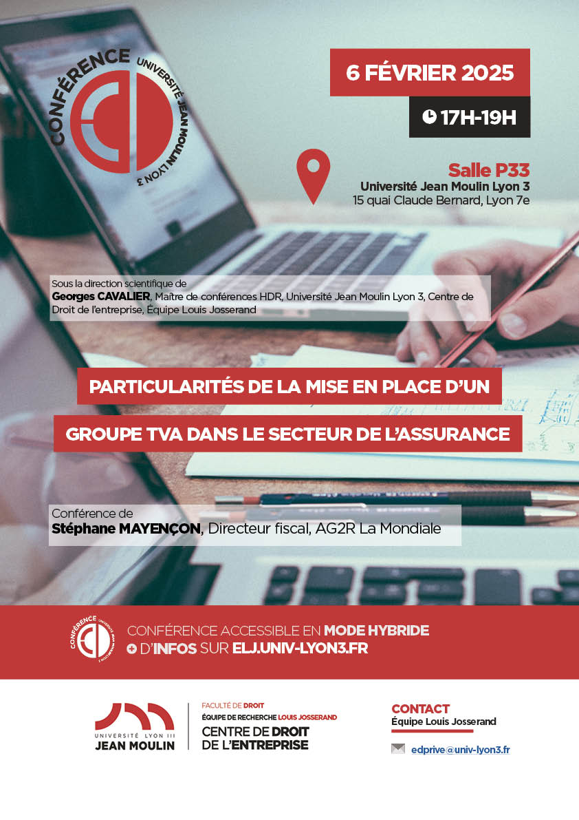 [CONFERENCE] "Particularités de la mise en place d'un groupe TVA dans le secteur de l'assurance"