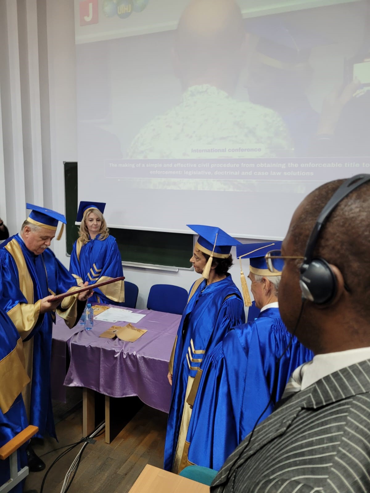 Mme Frédérique Ferrand, professeure à l’Université Jean Moulin Lyon 3, s’est vue conférer le grade de Docteur Honoris Causa par l’Université Ovidius de Constanta (Roumanie) le 6 octobre 2023, à l’occasion d’une conférence internationale organisée en coopération avec l’Union Internationale des Huissiers de Justice (UIHJ) sur « La constitution d’une procédure civile simple et efficace de l’obtention du titre exécutoire à son exécution : solutions législatives, doctrinales et jurisprudentielle ».