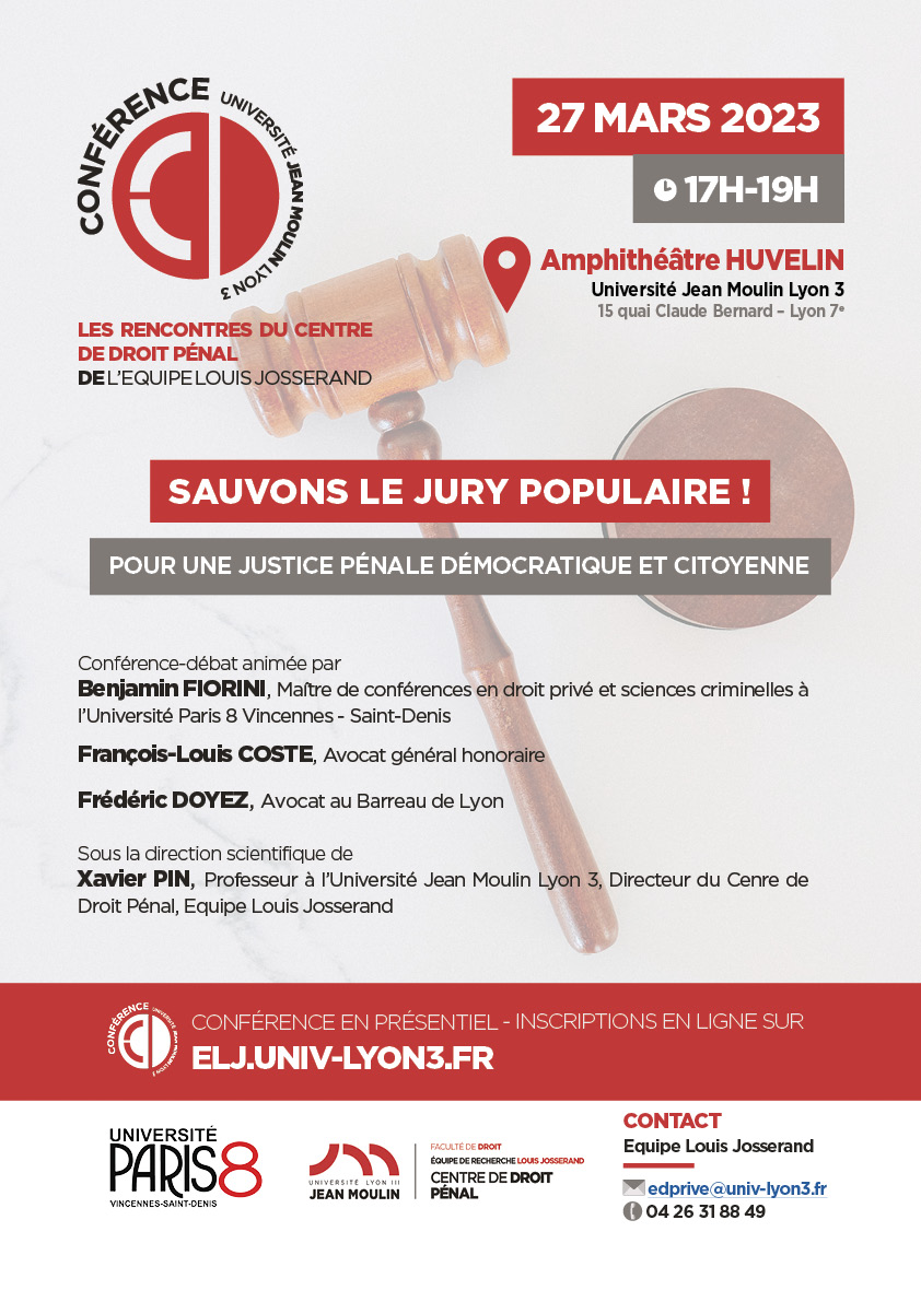 Sous la direction scientifique de Xavier PIN, Professeur à l'Université Jean Moulin Lyon 3, Directeur du Centre de Droit Pénal, Equipe Louis Josserand.