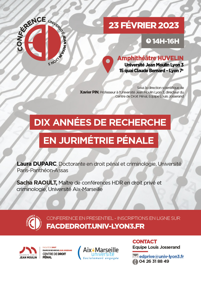 [RENCONTRES DU CENTRE DE DROIT PENAL] "Dix années de recherche en jurimétrie pénale"