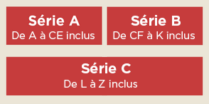 Les étudiant(e)s sont réparti(e)s en trois séries, par ordre alphabétique du nom de famille