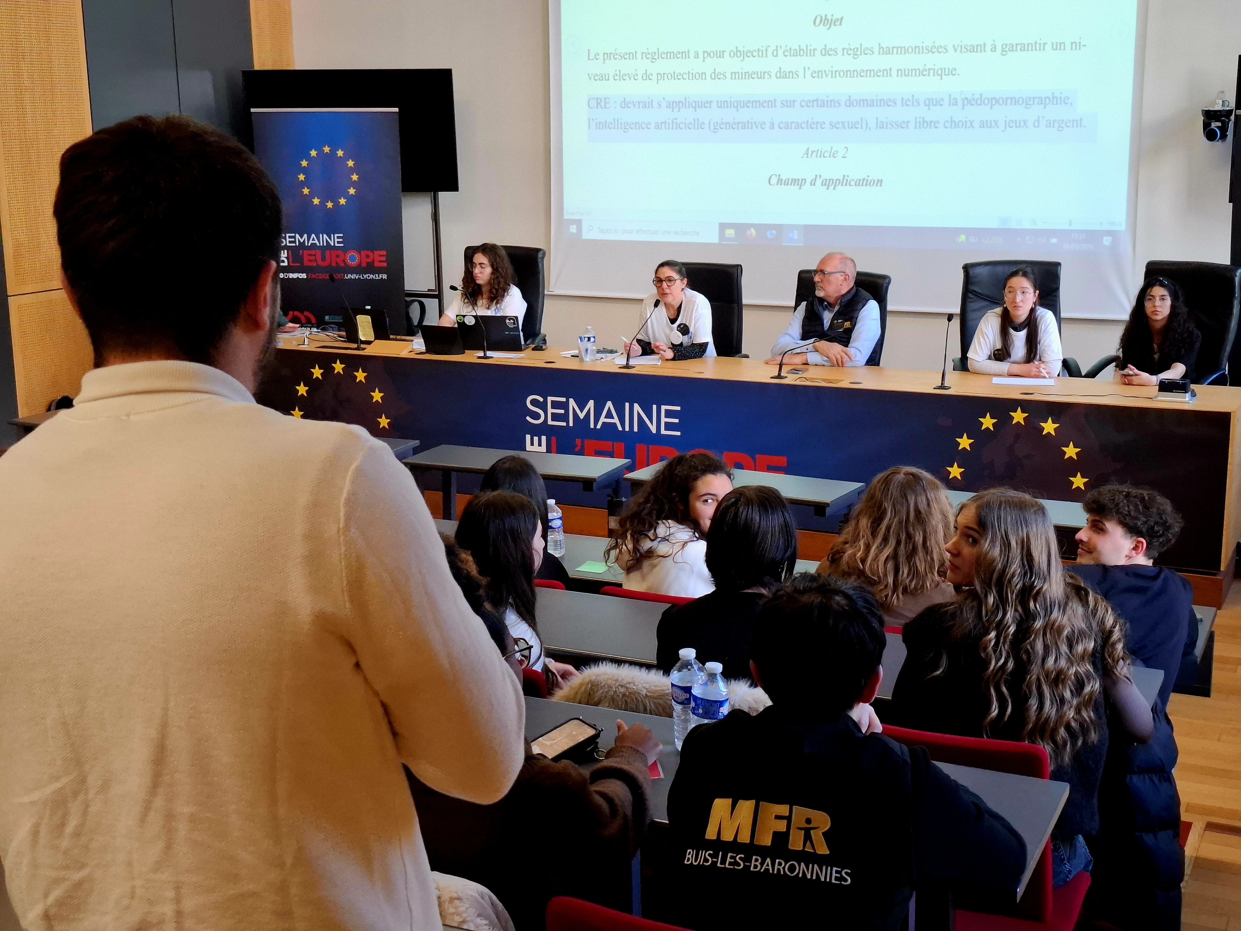 Le CEE-EDIEC et la Faculté de droit ont eu le plaisir d'ouvrir les portes de l'Université Jean Moulin Lyon 3 aux élèves des Maisons familiales rurales (MFR) pour une simulation du Parlement européen, organisée par les MFR et la Maison des européens de Lyon.