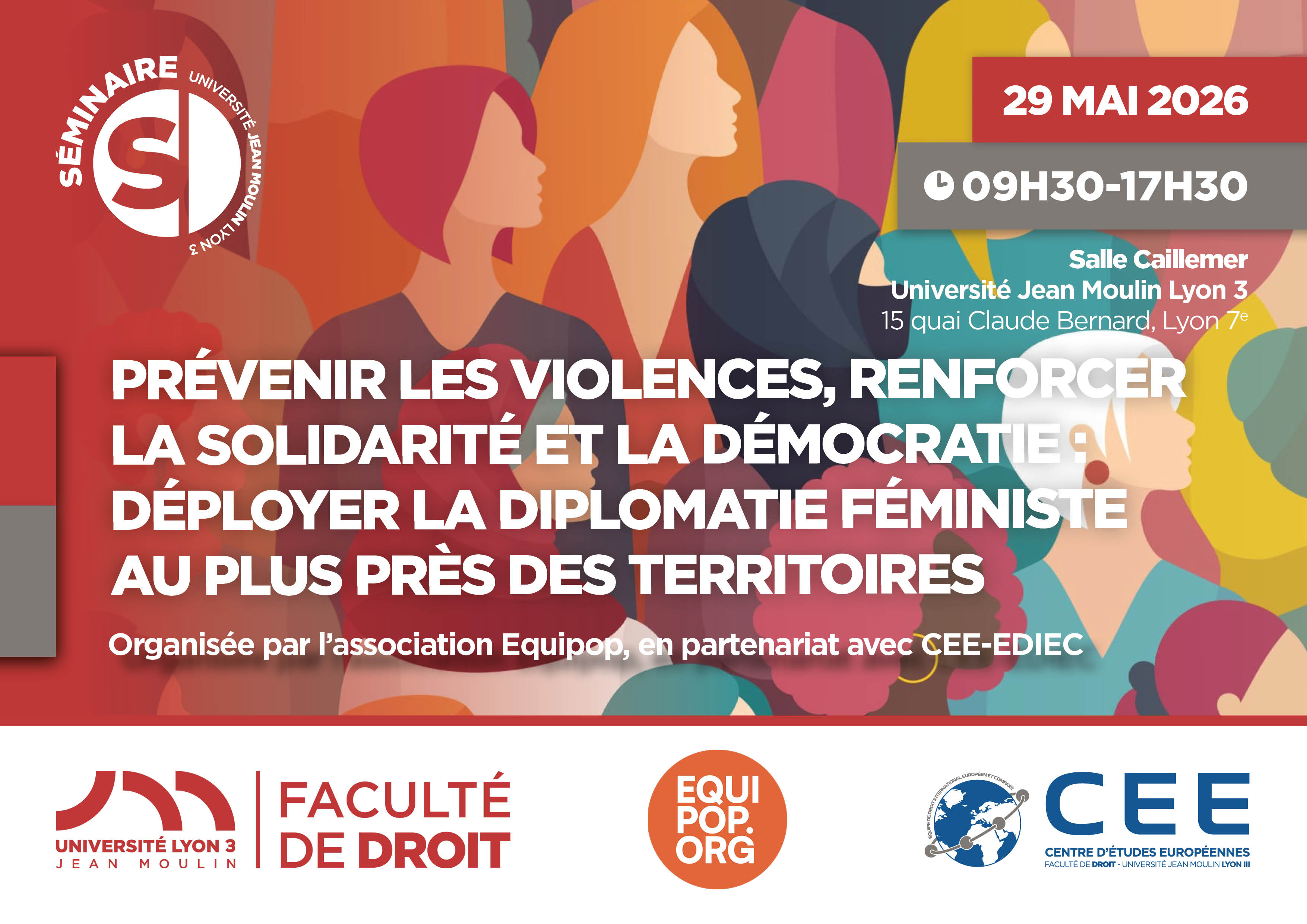 Co-organisé par Equipop et le CEE-EDIEC (Université Jean Moulin Lyon 3), ce séminaire réunira une cinquantaine de chercheur·euses, élu·es, diplomates et responsables associatives afin :- d'analyser l’actualité du continuum de violences sexistes : de l’intime au (géo)politique ;